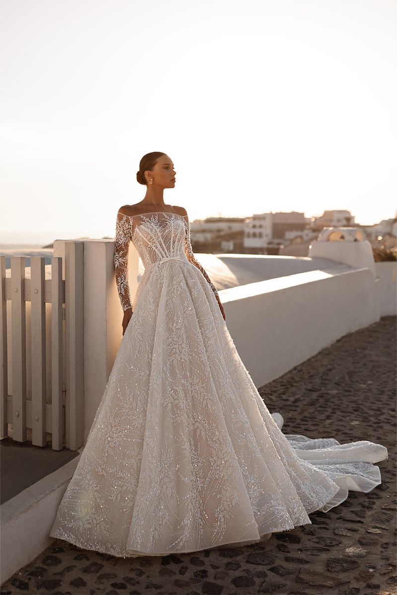 Be the ultimate blushing bride in the MARIA ANETTE 5714. With a long, elegant silhouette and a playful off-shoulder design, this dress is perfect for a whimsical wedding. The corset adds a touch of romance and ensures a flattering fit for the big day. Say 'I do' in style!