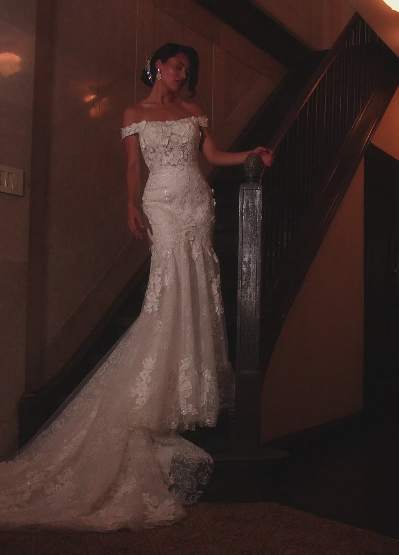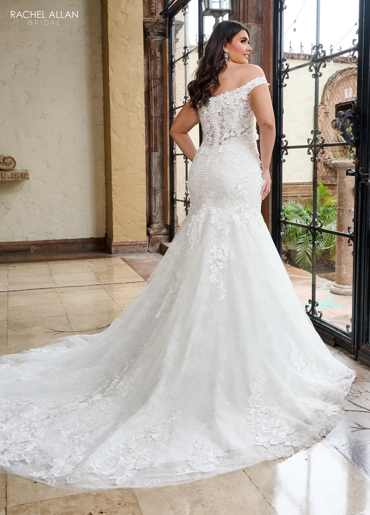 Step into romance with the Rachel Allan RB5082 dress, designed to make every bride feel like a dazzling dream. Its off-the-shoulder neckline adorned with 3D floral appliques and sparkling beads brings elegance with a playful twist. The mermaid silhouette hugs your curves just right, while detachable sleeves and a removable bodice liner let you customize your look. Made from luxurious tulle and glitter tulle, this gown in Ivory or White guarantees a show-stopping entrance you'll never forget.