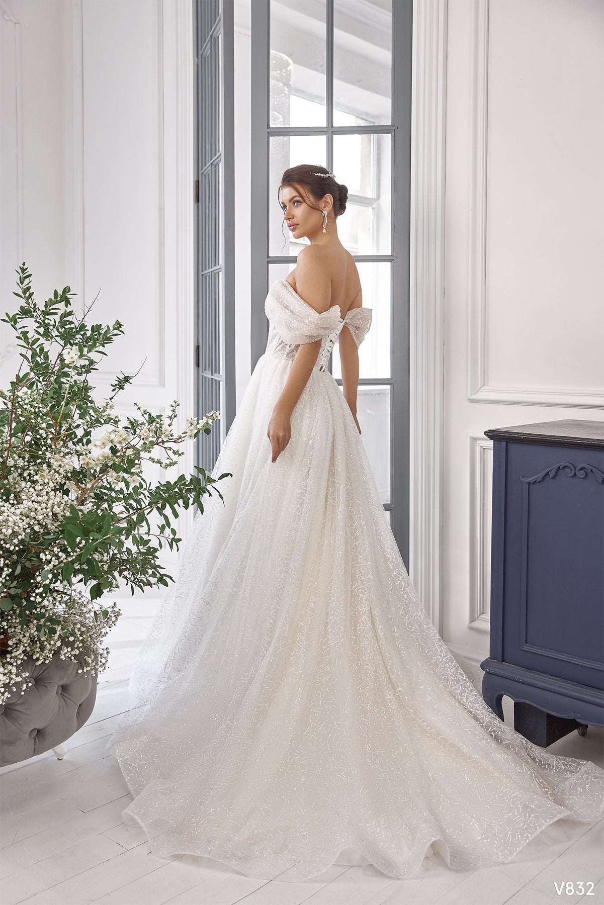 The Vissaria 832 Dress is a stunning bridal choice that celebrates your special day with timeless elegance. This long gown features a romantic off-shoulder design paired with a sweetheart neckline that beautifully frames your face and shoulders. The open back adds an alluring touch of sophistication, creating a graceful silhouette that moves beautifully as you walk down the aisle. Perfect for brides seeking a dress that balances classic romance with modern style, this piece ensures you'll feel confident and radiant throughout your celebration.