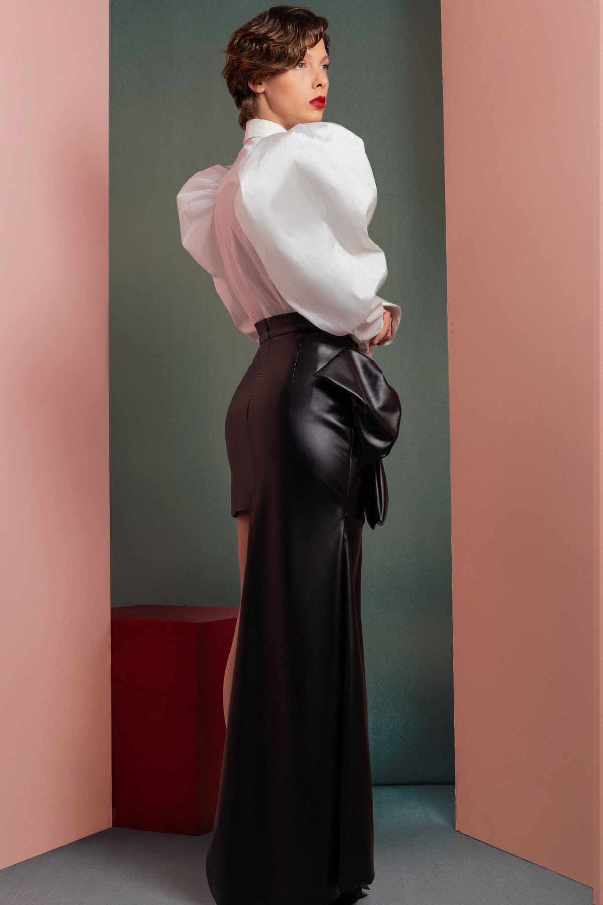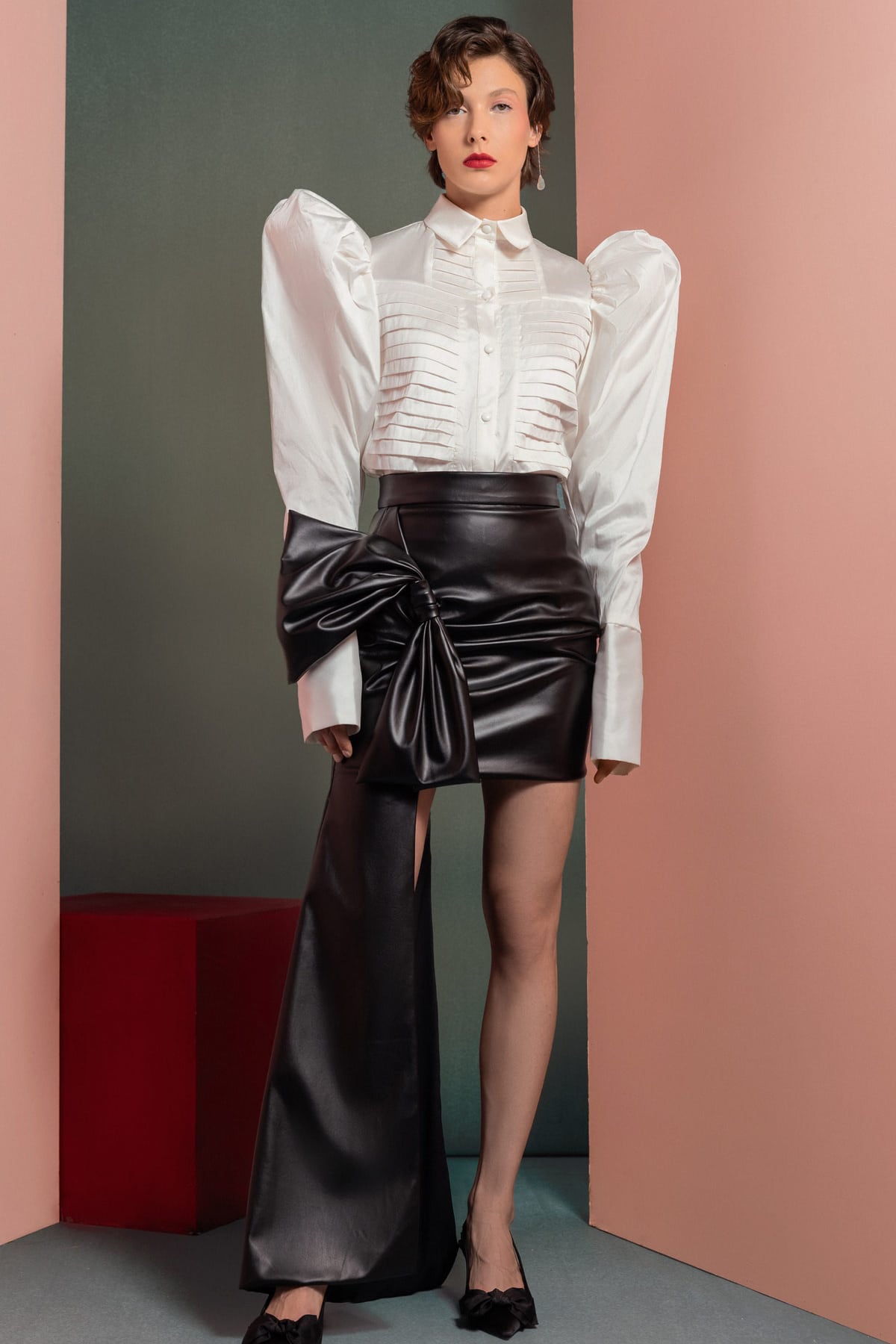 MNM Couture GOF2502 Satin & Leather Cocktail Dress