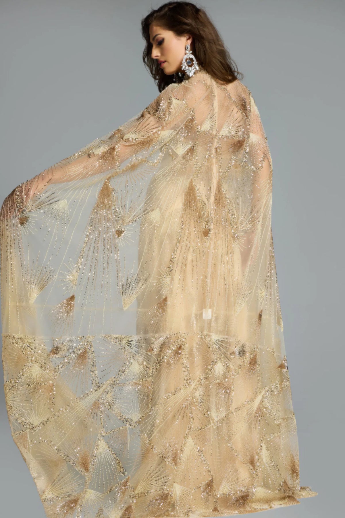 Turn heads in the Jovani 39214 Dress, a stunning strapless gown paired with a delicate beaded sheer cape. This playful design combines elegance with a touch of whimsy, perfect for making a memorable entrance at any special event. The cape adds a graceful flow, while the strapless silhouette highlights your shoulders and neckline beautifully. Embrace your fun side with this captivating look!