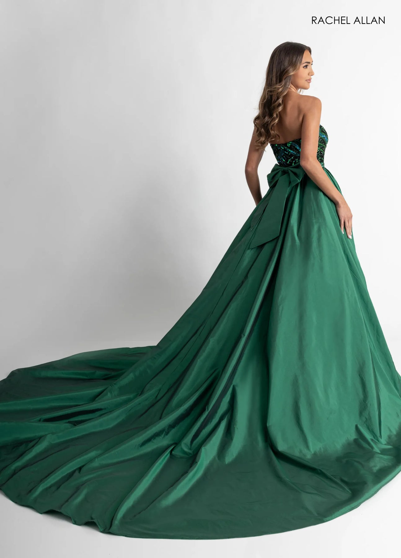Transform your look with the Rachel Allan OVL1000 Dress, featuring a stunning detachable overlay that brings instant drama and movement to any occasion. The removable design lets you switch between sleek and sensational styles, while the signature statement bow adds a cheeky, glamorous touch. Perfect for prom, pageants, or red-carpet moments, this dress gives you the flexibility to customize your vibe—go bold and voluminous or keep it classic. Elegance meets playfulness in one show-stopping piece.