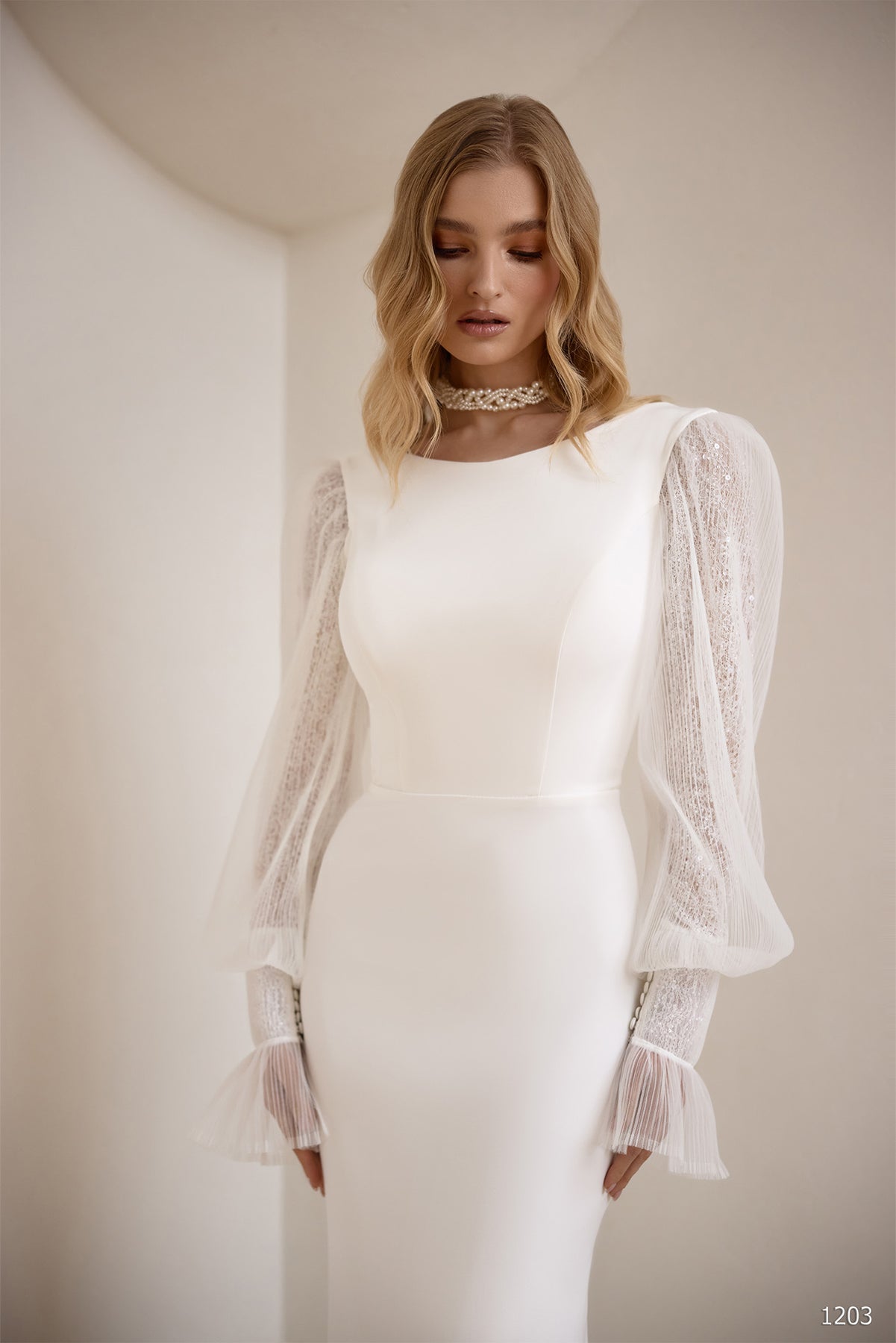The Vissaria 1203 Dress is an elegant bridal choice that celebrates timeless simplicity. Crafted with long sleeves and a flowing silhouette, this gown offers understated sophistication for the modern bride. The clean lines and minimalist design allow your natural beauty to shine while providing graceful coverage. Perfect for ceremonies where you want to feel confident and comfortable, this dress combines classic bridal elegance with contemporary restraint. Whether you're planning an intimate gathering or a grand celebration, the Vissaria 1203 delivers refined style that transcends trends and honors the significance of your special day.
