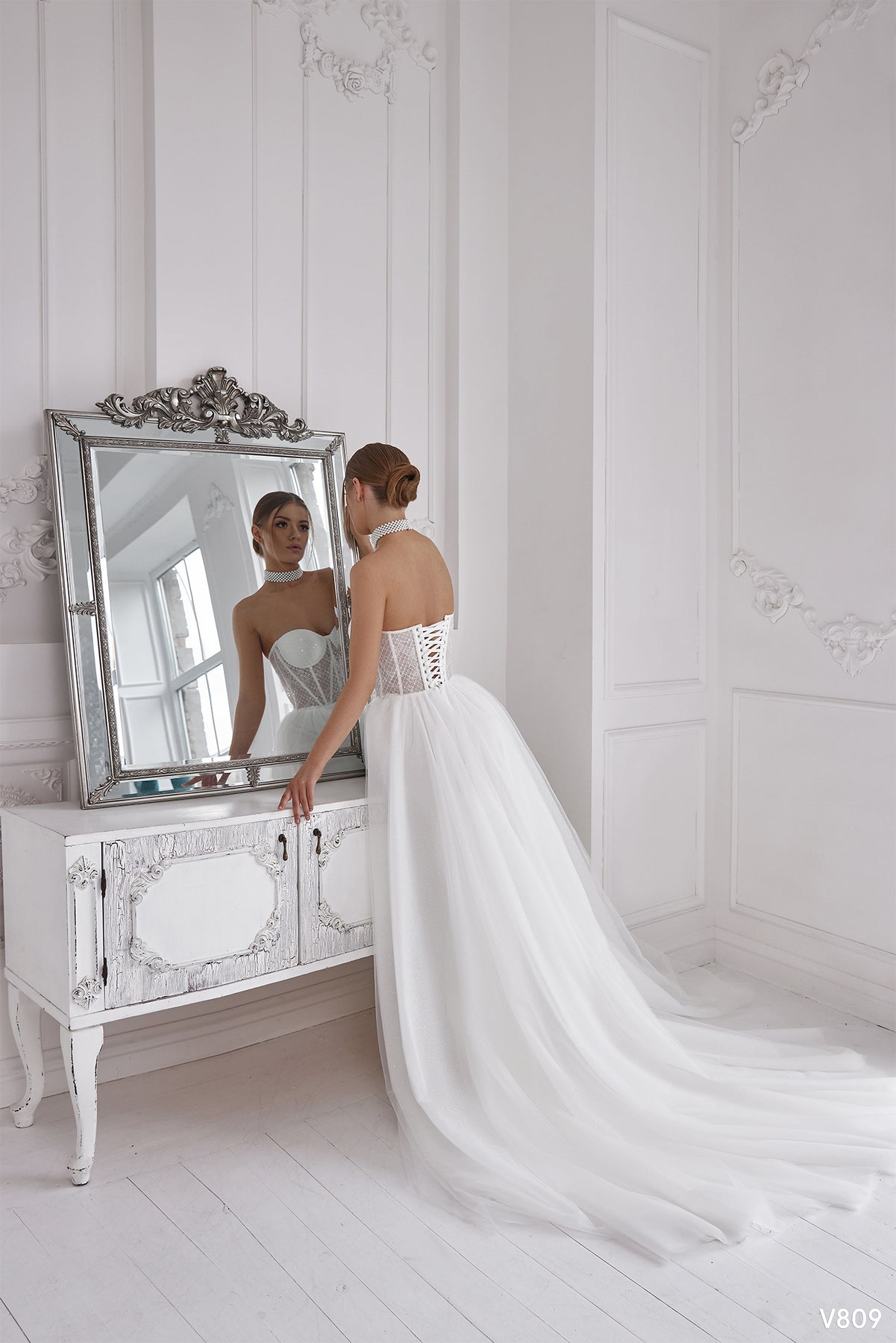 The Vissaria 809 Dress is a breathtaking bridal choice that celebrates your special day with timeless elegance. Featuring long sleeves and a high neckline for modest sophistication, this gown showcases an enchanting off-shoulder silhouette with a romantic sweetheart neckline that draws attention to your face and shoulders. The dramatic open back creates an unforgettable moment as you walk down the aisle, while the flowing long length adds grandeur and grace. This dress empowers you to feel beautiful, supported, and utterly confident as you say "I do"—a stunning statement piece designed to make your wedding day truly memorable.