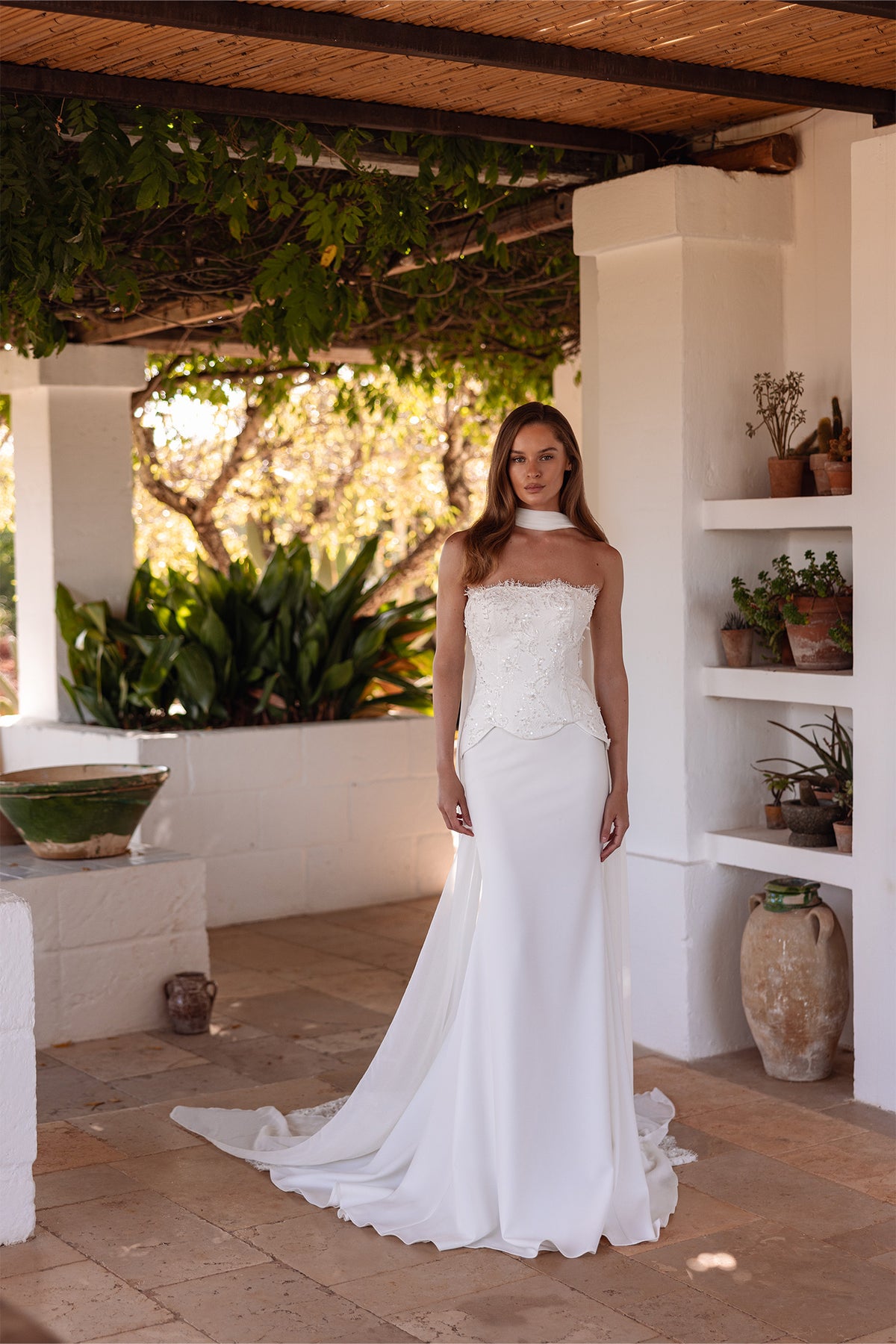 Slip into pure elegance with the Maria Anette 5822—a show-stopping off-shoulder mermaid gown that's all about drama and romance. This sleeveless stunner features a daring open back that'll have everyone talking, while the sheath silhouette hugs you in all the right ways before flaring into a gorgeous mermaid hem. Perfect for brides who dare to be bold, this dress transforms you into the main event. Timeless, daring, unforgettable.