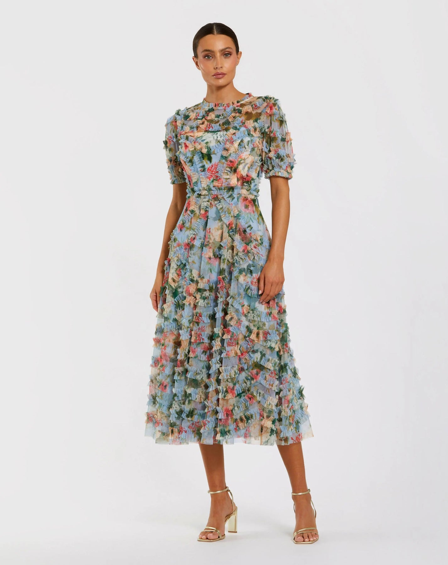 - Short ruffled sleeves