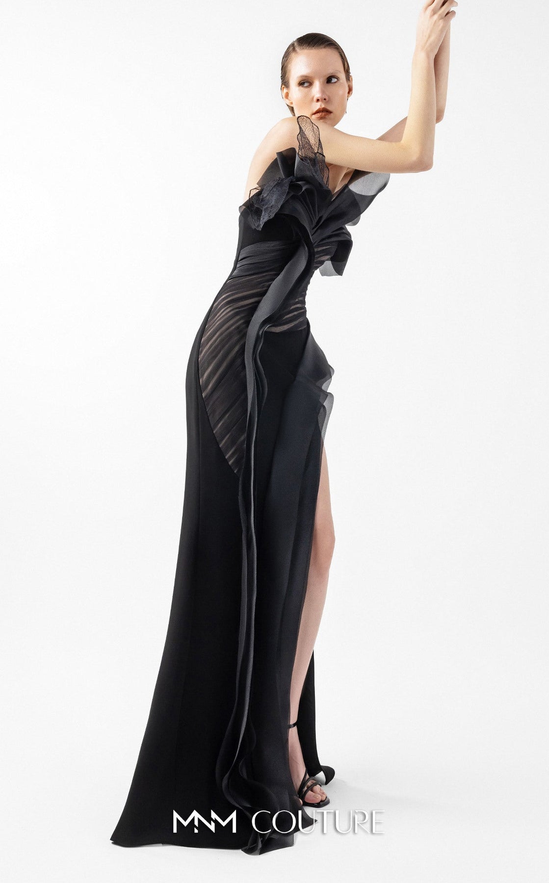 Turn heads with the Gaby Charbachy G2010 Dress, a playful couture gown that blends elegance and boldness. This long, sleeveless dress features a chic off-shoulder neckline, an open back, and a high slit, adding just the right amount of daring flair. Perfect for making a memorable statement, it combines luxury and fun to keep you feeling confident and fabulous all night long.