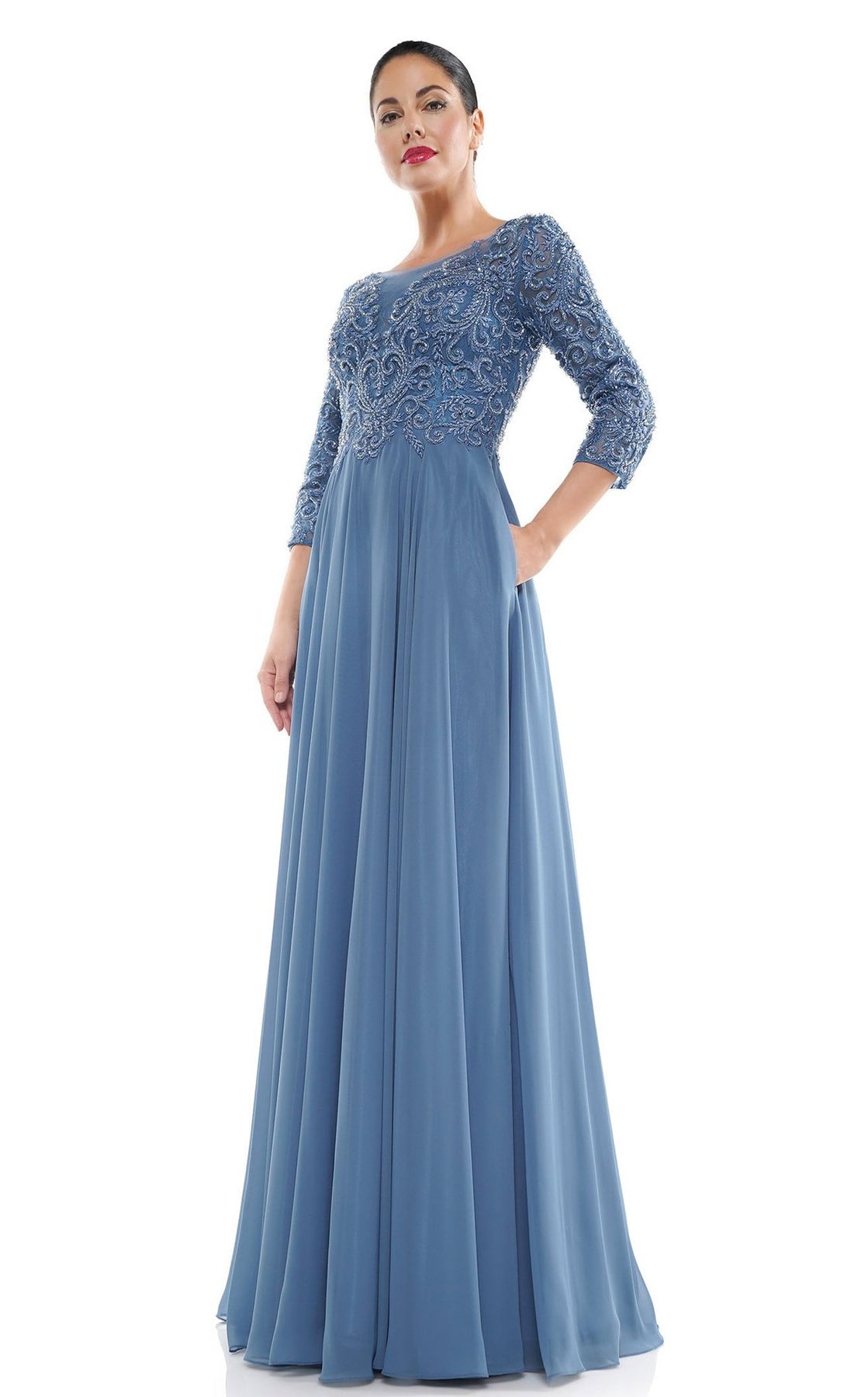 Step into the spotlight with the MARSONI BY COLORS MV1052 Dress! This playful evening gown features an elegant illusion bateau neckline and delicate three-quarter sleeves adorned with embroidered lace. The flowing A-line skirt sweeps the floor with graceful gathers and a charming train, perfect for twirling the night away. Whether it’s a gala or a special celebration, this dress promises to make you the center of attention with effortless style and flair.