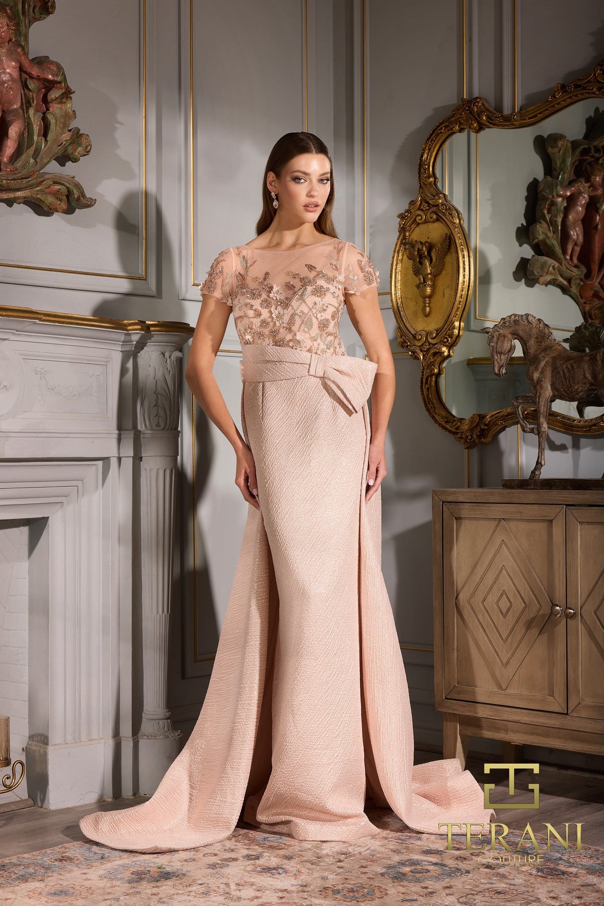 Slip into pure glamour with this stunning Terani Couture creation. The sleek bodycon silhouette hugs your curves in all the right ways, crafted from luxurious matte satin paired with a dazzling sequin-patterned skirt. The bold fuchsia and black color combo delivers instant drama and sophistication—perfect for turning heads at any event. Whether you're hitting the red carpet or making a grand entrance, this dress promises to make you feel absolutely fabulous.