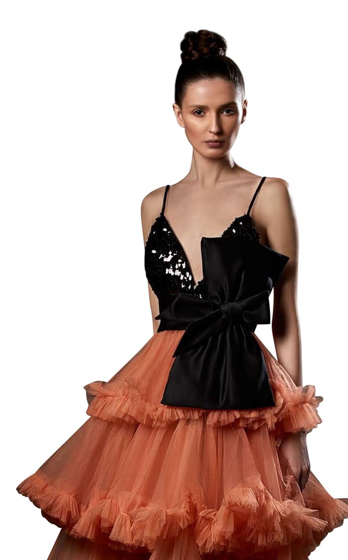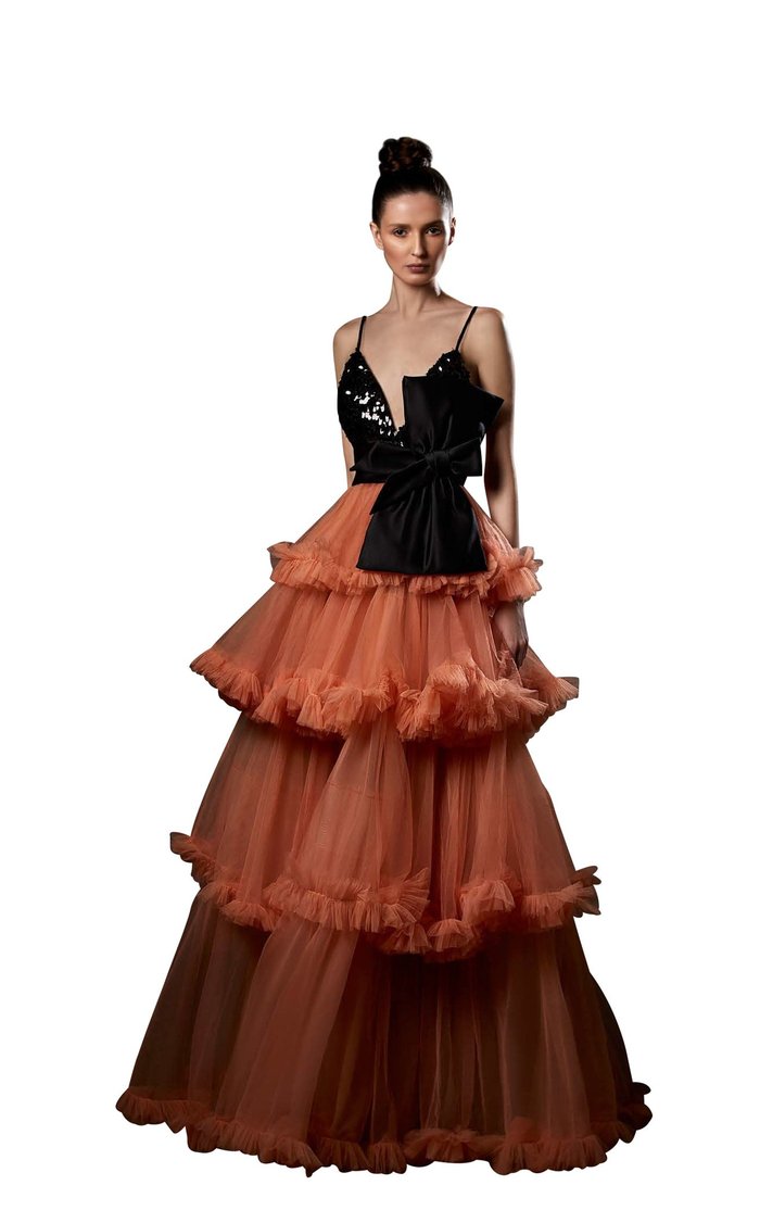 Step into the spotlight with the Ziad Germanos ZG61, where elegance meets pure magic. This stunning A-line gown floats in whisper-soft tulle, its tiered skirt dancing with every move you make. The daring plunging V-neckline and delicate straps frame your figure beautifully, while a cheeky bow detail adds just the right amount of sass. A hidden zipper back keeps everything perfectly in place so you can focus on having the time of your life. Perfect for those moments when you want to turn heads and feel absolutely fabulous.