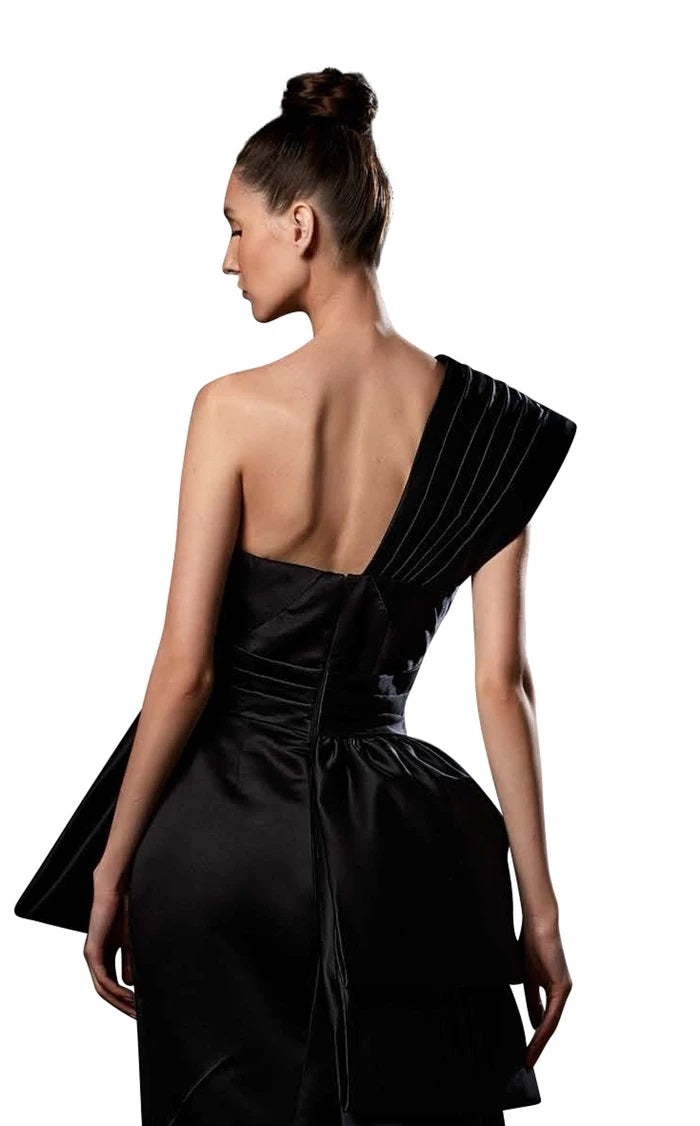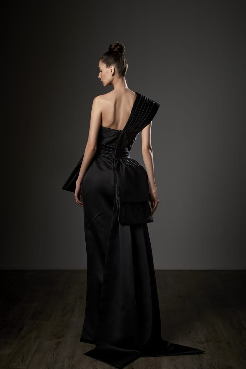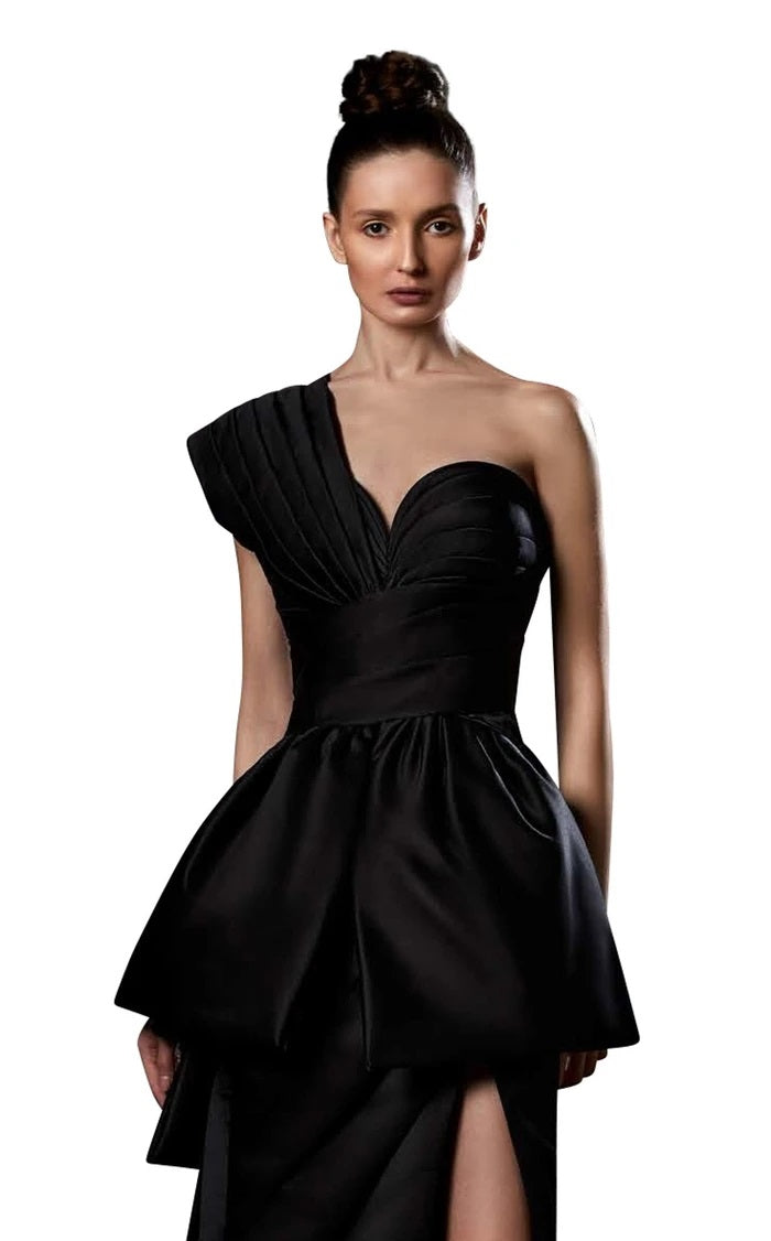 Make a grand entrance in the Ziad Germanos ZG68—where modern edge meets timeless elegance. This stunning mikado gown flaunts a chic one-shoulder neckline and playful peplum detail that'll have everyone asking who designed your look. The sleek, fitted silhouette hugs you in all the right ways, while the flowing skirt with its strategic slit keeps things fun and flirty. Discreet back zipper, zero fuss, maximum impact. Perfect for those moments when you want to look absolutely unforgettable.