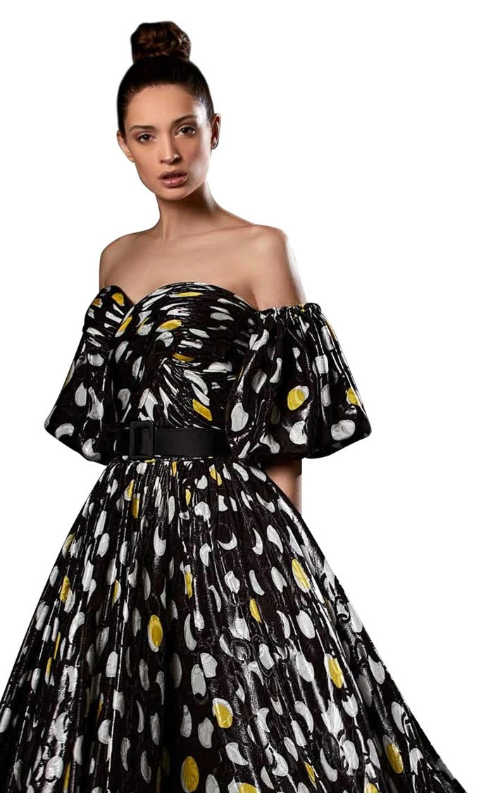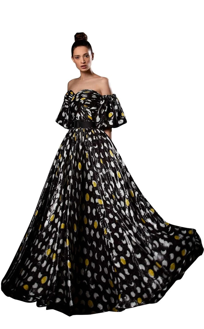 Prepare to turn heads in the Ziad Germanos ZG77—a show-stopping gown that's equal parts glamour and fun! This sequin stunner features a playful polka dot pattern that catches the light with every twirl, while the strapless sweetheart neckline keeps things elegantly flirty. A cinched waist belt sculpts your silhouette beautifully, and the flowing A-line skirt lets you move with ease all night long. The cheeky open-back zipper detail adds just the right touch of allure. Perfect for galas, celebrations, or any moment when you want to feel absolutely fabulous—this gown delivers sophistication with a wink and a smile.