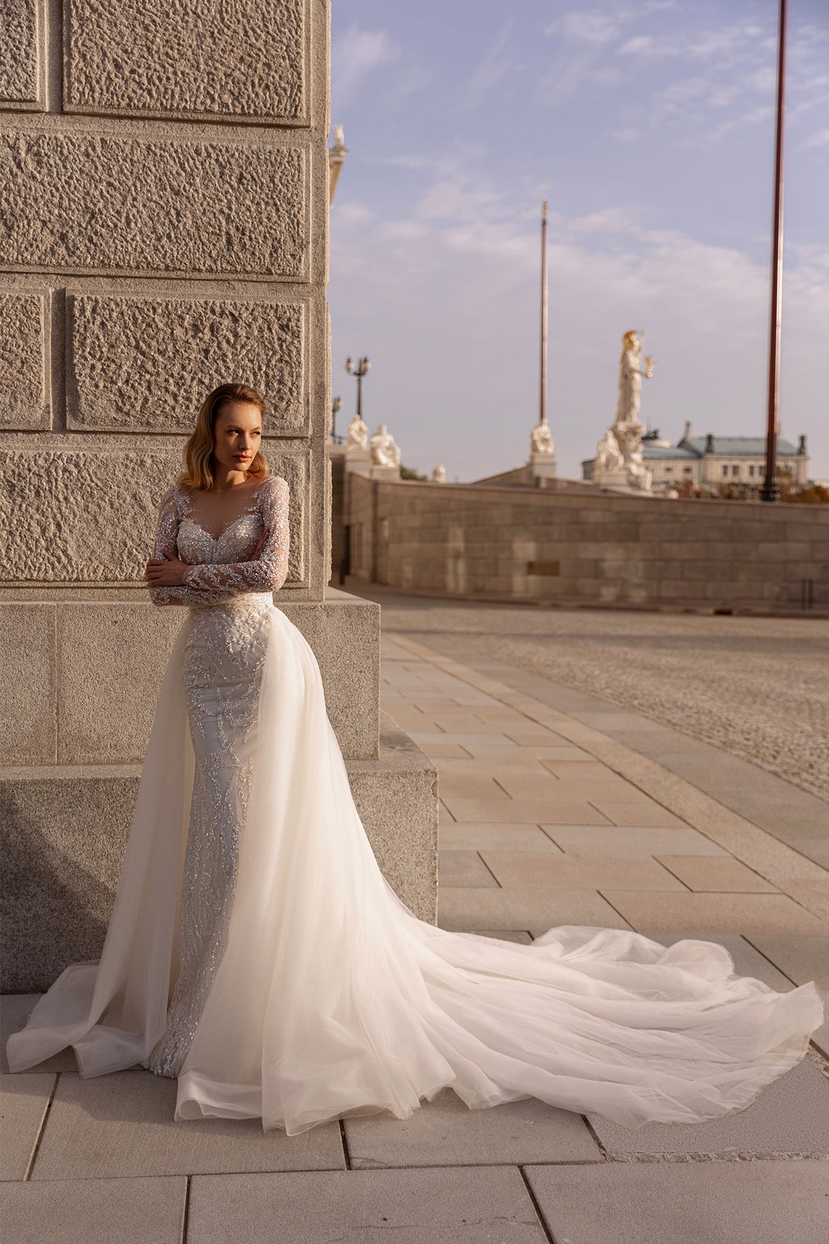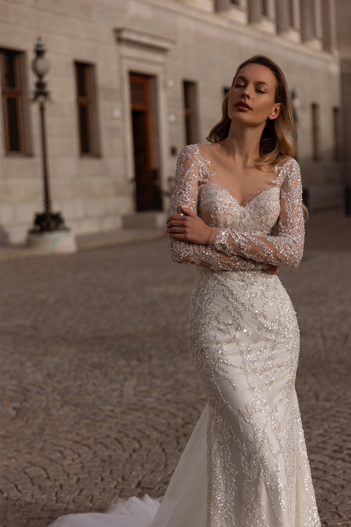 The Maria Anette 5617 is an elegantly designed dress with a sweetheart neckline, long sleeves, and a mermaid style silhouette. The open back adds a touch of allure to this timeless piece. Perfect for formal events and special occasions.