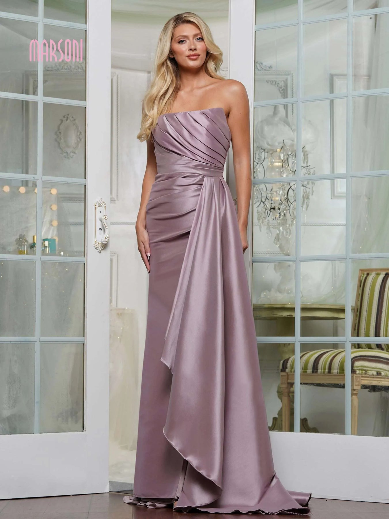 Get ready to turn heads in the MARSONI BY COLORS mv1326 Dress! This strapless fit & flare gown in stretch mikado features a pointy neckline, pleated bodice, and sash for a stunning silhouette. Perfect for a formal event or special occasion. (Sassy, sleek, and totally chic!)