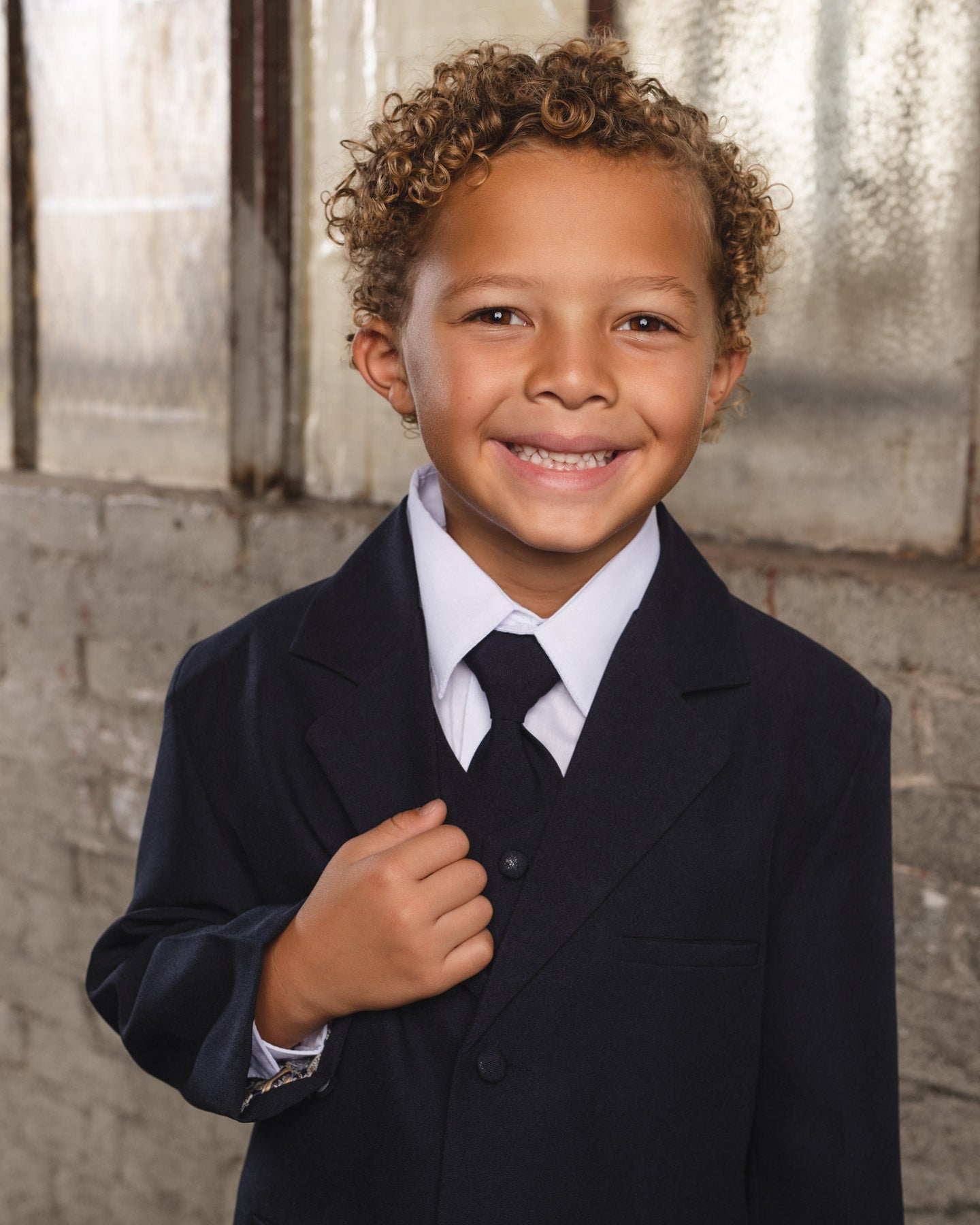 Introduce your little one to timeless elegance with the Joey Navy suit from our Peanut Butter Collection. Crafted from 100% polyester, this five-piece ensemble delivers comfort and durability for any formal occasion. Perfect for ring bearers, weddings, and special celebrations, the set includes a tailored jacket, matching pants, coordinating vest, crisp shirt, and classic tie. The thoughtful design accommodates various body types, ensuring every child feels confident and comfortable. Make those memorable moments even more special with sophisticated style that's built to last.