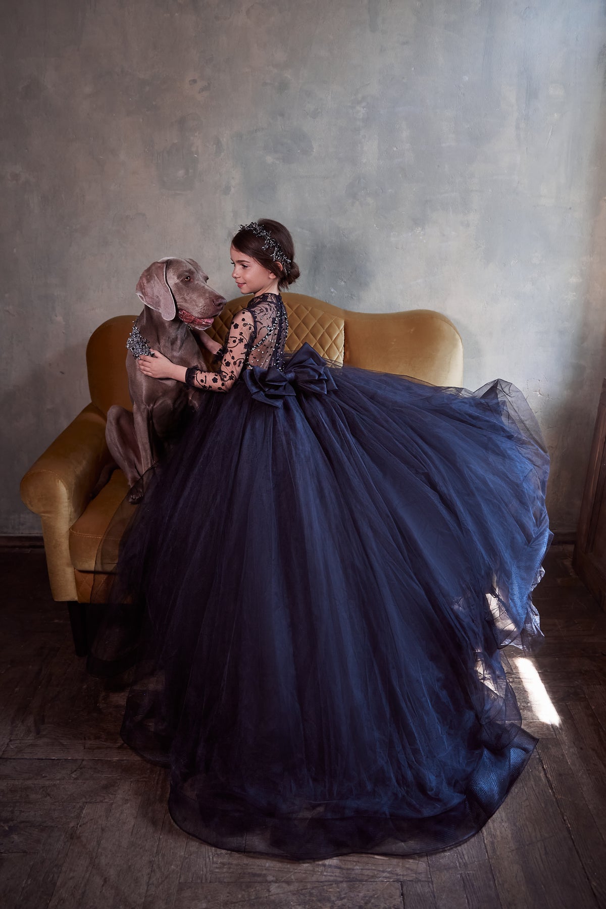 This Pentelei 3142 Kids Dress combines charm and elegance with its flowing long tulle skirt and delicately beaded bodice. Featuring long sleeves for a graceful look, this playful dress is perfect for special occasions where your little one can shine with both comfort and style.