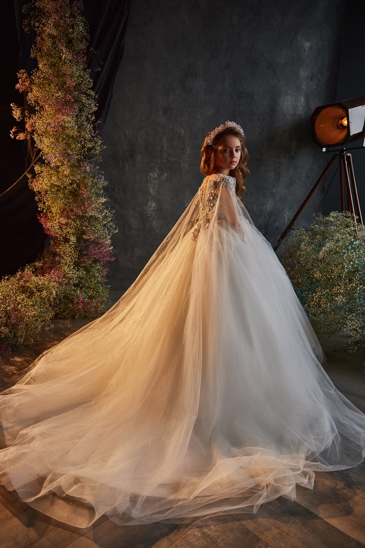 This Pentelei 3209 kids dress is fit for a fairytale ball. Sparkle and tulle come together to form this long-sleeved, floor-length ballgown fit for a princess. It's perfect for a formal event, or just feeling like a glamourous kid!