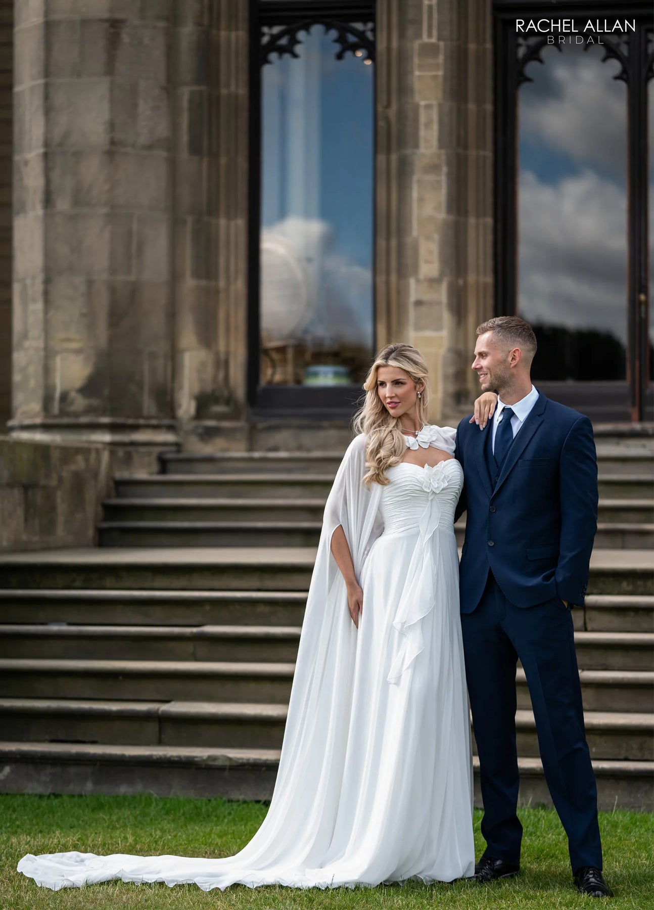 Imagine floating down the aisle in pure magic! This Rachel Allan RB5124 gown captures that dreamy, ethereal vibe with its luxurious ivory chiffon that moves like a cloud. The bodice features stunning 3D floral details that catch the light beautifully, while the optional cape adds a touch of romantic drama—perfect for twirling through garden ceremonies or outdoor celebrations. Whether you're channeling your inner goddess or just want to feel absolutely radiant, this dress delivers effortless elegance with serious swoon-worthy style. It's the kind of gown that makes you feel as enchanting as you look.