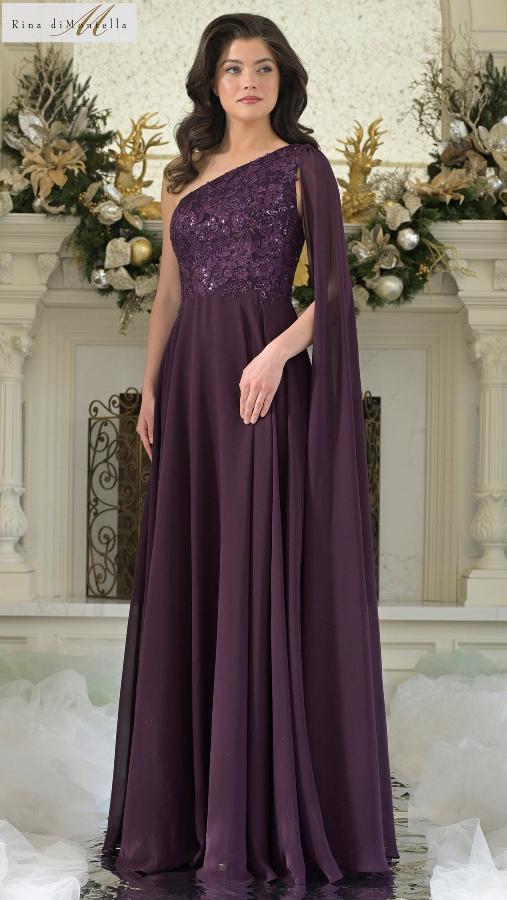 The Rina Di Montella rd3354 Dress is a stunning one-shoulder design with delicate draping and intricate embroidery. The circular skirt adds elegant movement. Experience luxury and sophistication in this dress.