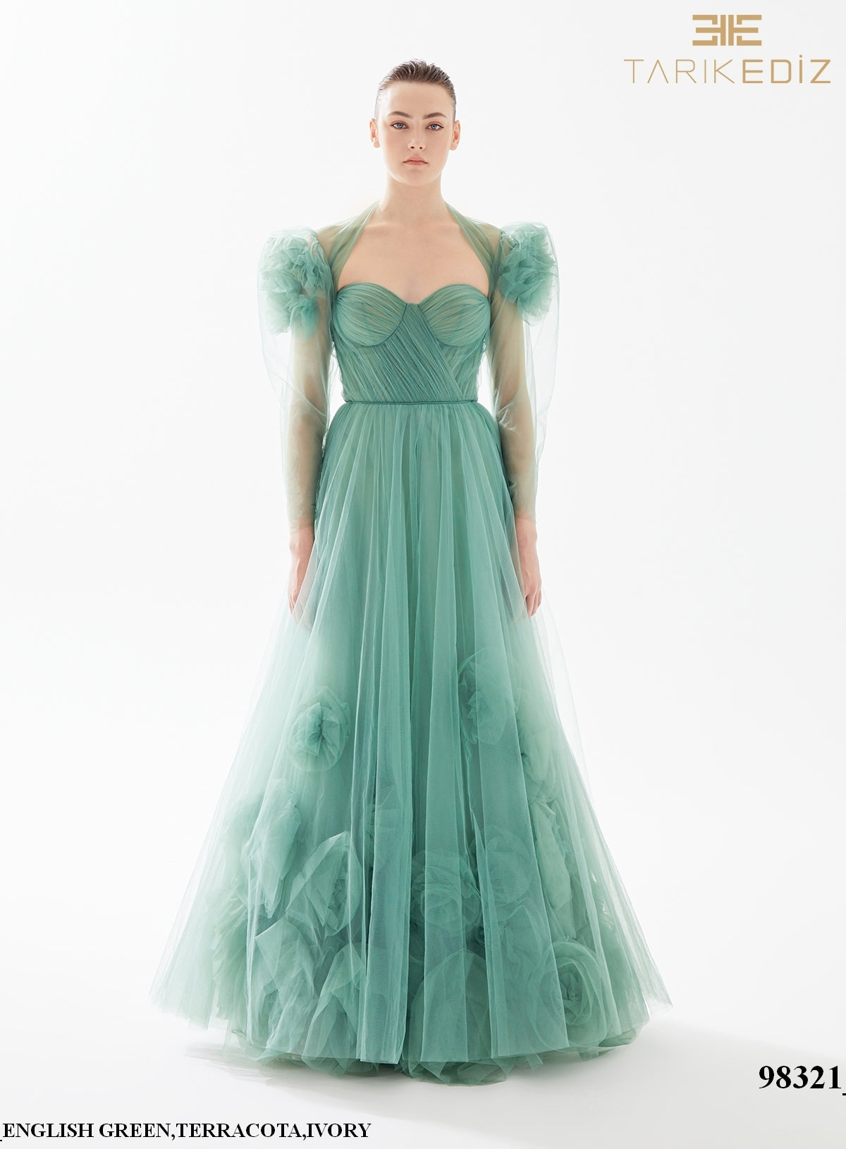 This beautiful Tarik Ediz 98321 jacket adds a touch of elegance to your formal attire. With a sweetheart neckline, long fitted sleeves, and stunning floral detailing at the back, this jacket is the perfect addition to any prom, evening, or formal event. Pair it with the Tarik Ediz 98244 dress for a stunning ball gown ensemble.