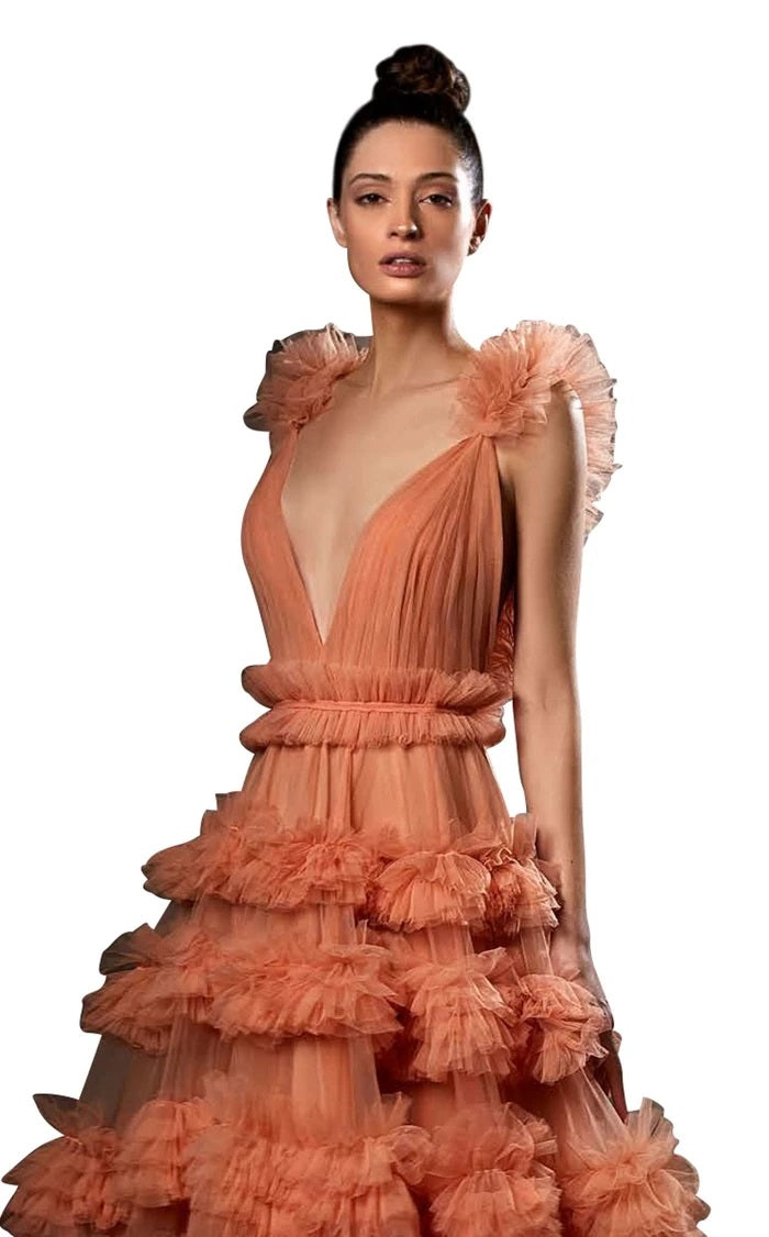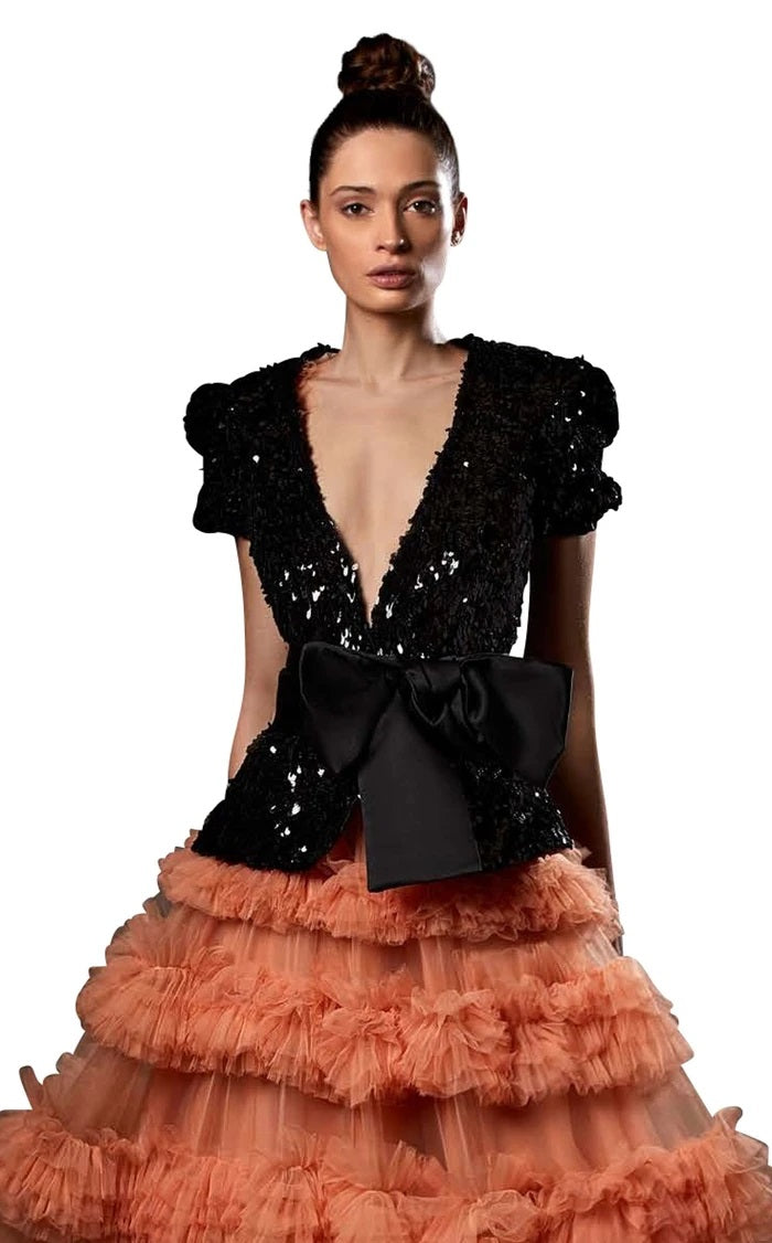 Make a grand entrance in the Ziad Germanos ZG62, a show-stopping ball gown that's equal parts elegant and fun. This luxurious long dress features a flattering V-neckline and charming half sleeves that strike the perfect balance between sophisticated and playful. The voluminous skirt creates that magical twirl-worthy moment, while refined tailoring ensures you feel absolutely stunning. Whether you're dancing the night away or simply soaking up the compliments, this gown delivers the glamour and confidence every special occasion deserves.